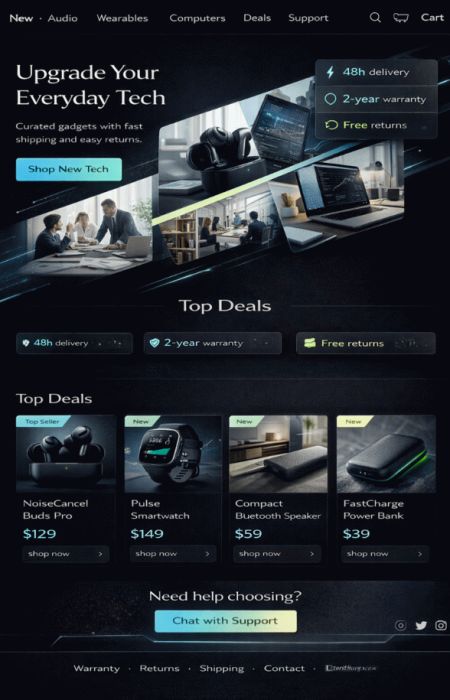 - Recenzje, znaczki zaufania i jasne informacje o dostawie/zwrotach