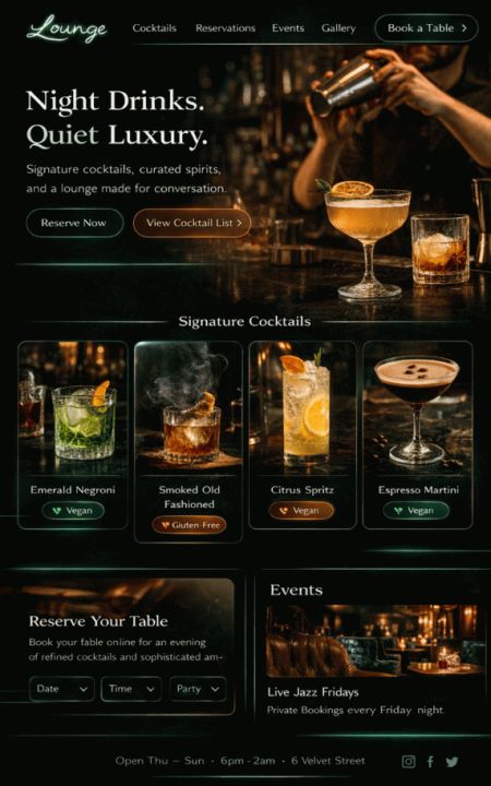 Prezentuj swoją restaurację w wysokiej jakości: kuchnia, zespół, godziny otwarcia, dojazd, galeria, wydarzenia i akcje. Goście znajdują wszystko od razu i szybciej dokonują rezerwacji lub zamówień. Opcjonalnie z sekcją wiadomości dla nowych dań, akcji i wieczorów tematycznych. Wszystko do zarządzania bez stresu technicznego i bez ping-pongu z agencją.